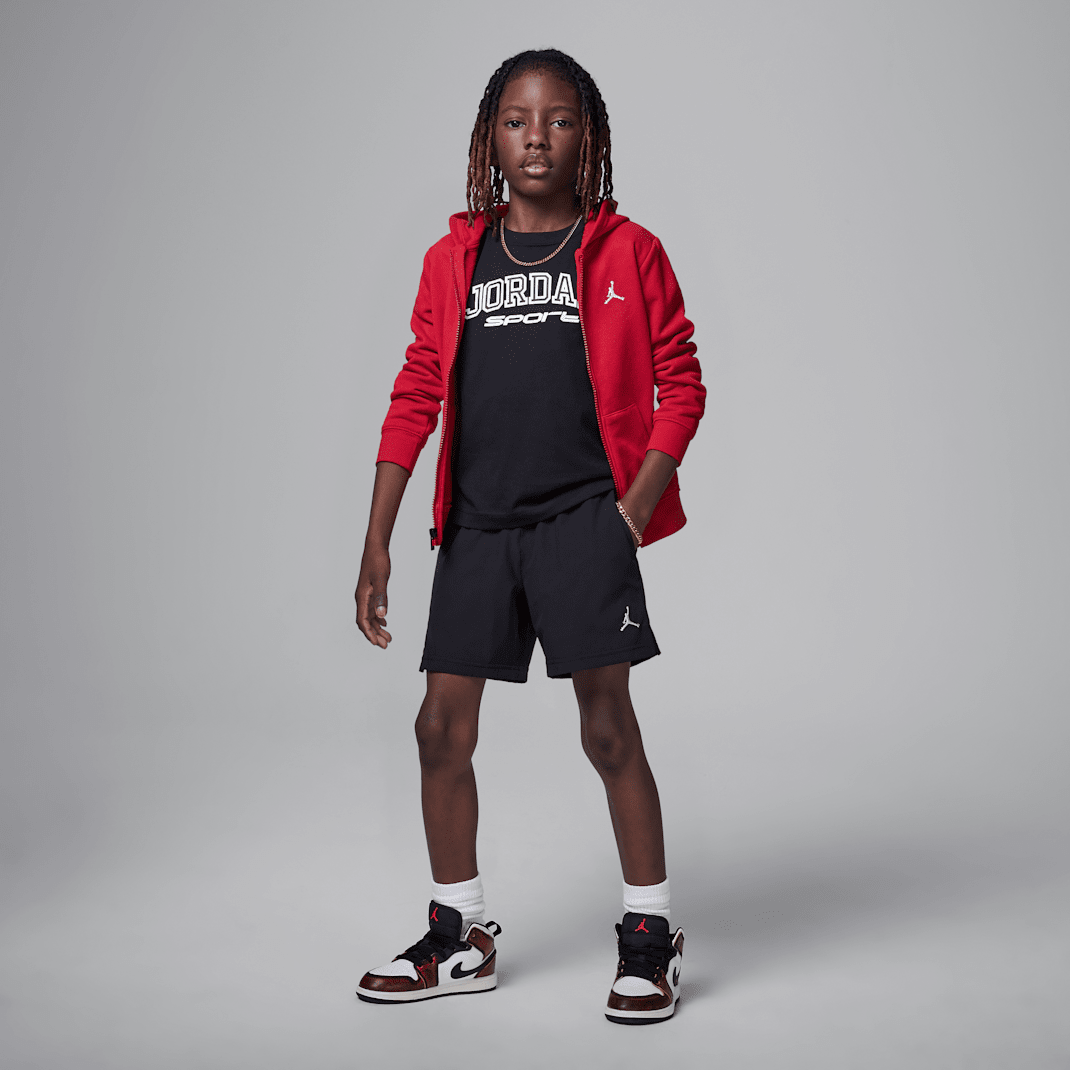 These lightweight “goes-with-anything” shorts are made of woven poly poplin fabric with added stretch for freedom of play. The stretch waistband has a drawcord for a comfy fit perfect for relaxing or getting active, and pockets provide spots to stash small items. Pair with any Jordan top for a coordinated look that complements your little one’s kicks.
